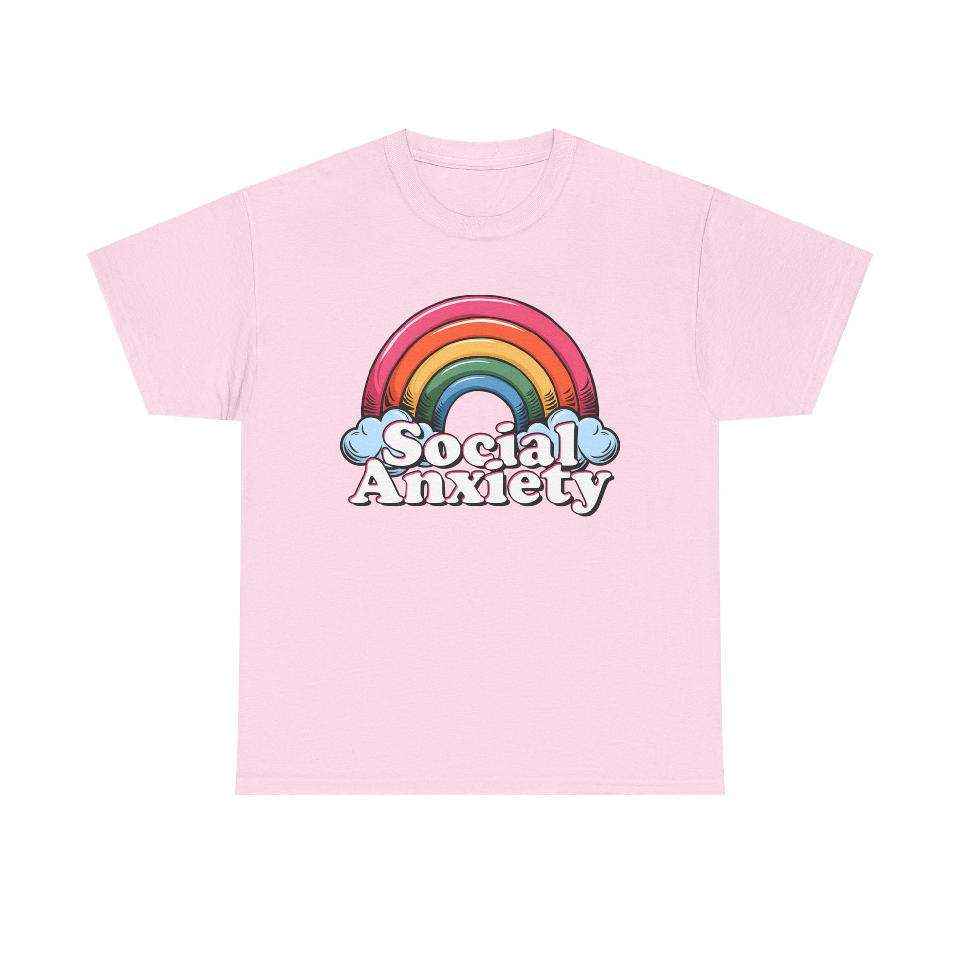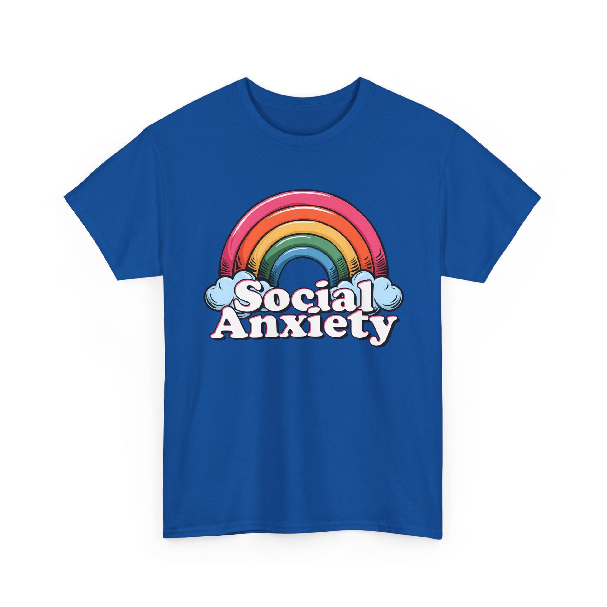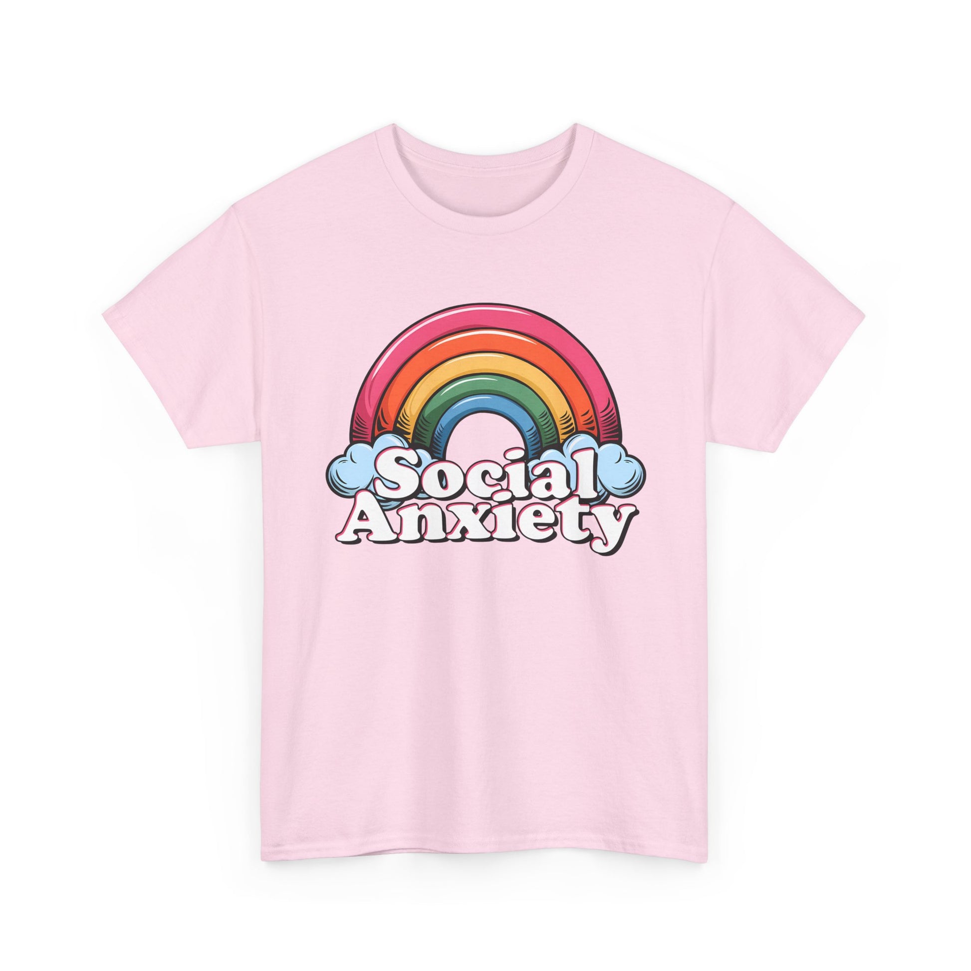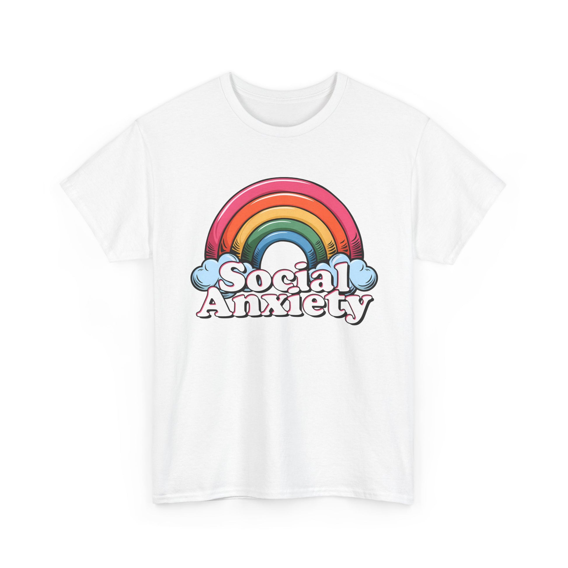 Embrace comfort and style with this Unisex Heavy Cotton Tee, perfect for those who want to express themselves with creativity and confidence. Featuring a playful 'Social Anxiety' design with a vibrant rainbow, this tee not only makes a statement but also encourages conversation and awareness around mental health. Ideal for casual outings, relaxed weekends, or cozy nights in, it fits right into any wardrobe. This versatile shirt caters to adults who appreciate stylish comfort and meaningful messaging. It's a thoughtful gift for friends or family, especially during Mental Health Awareness Month, casual get-togethers, or simply as a fun wardrobe addition for everyday wear.